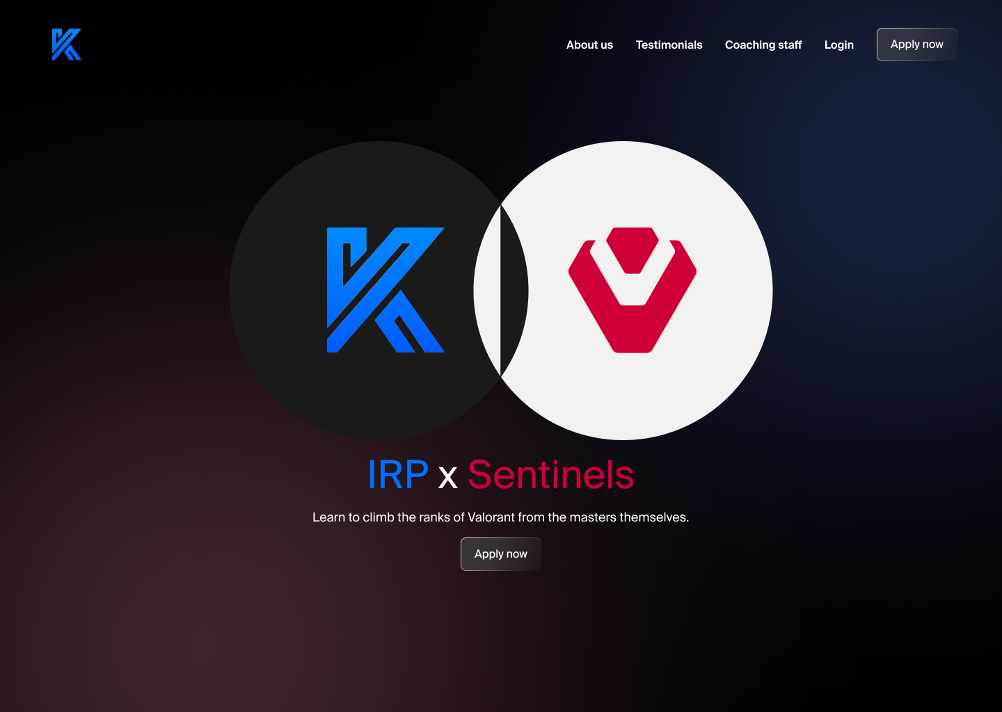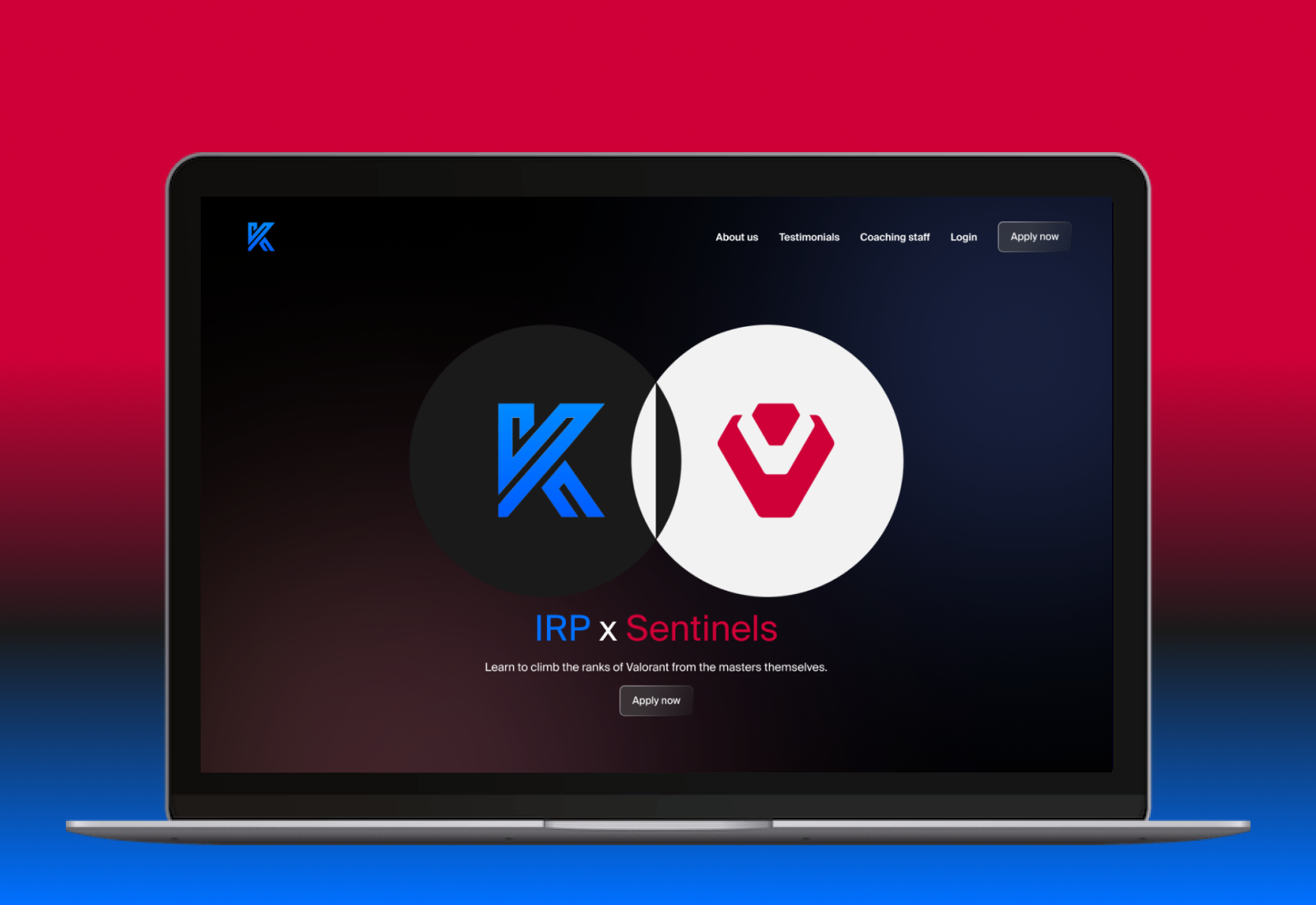 Designing a new website to market the collaboration with successful Valorant coaching service, IRP, and world renowned e-sports team, Sentinels